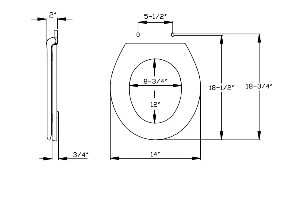 Centoco 4200-001 4200 Toilet Seat With Cover, Elongated Bowl, 14-1/4 in W, 2 in H, 18-5/8 in L, White, Top Mount Hinge
