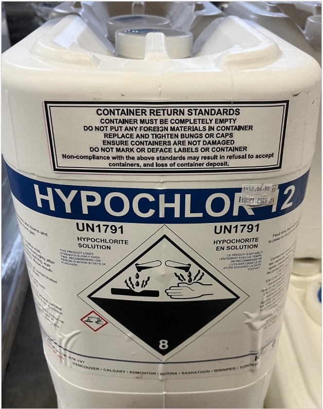 ClearTech SH1220 Sodium Hypochlorite (Chlorine), 12% NSF, 20L Returnable Carboy (Carboy Deposit Extra)