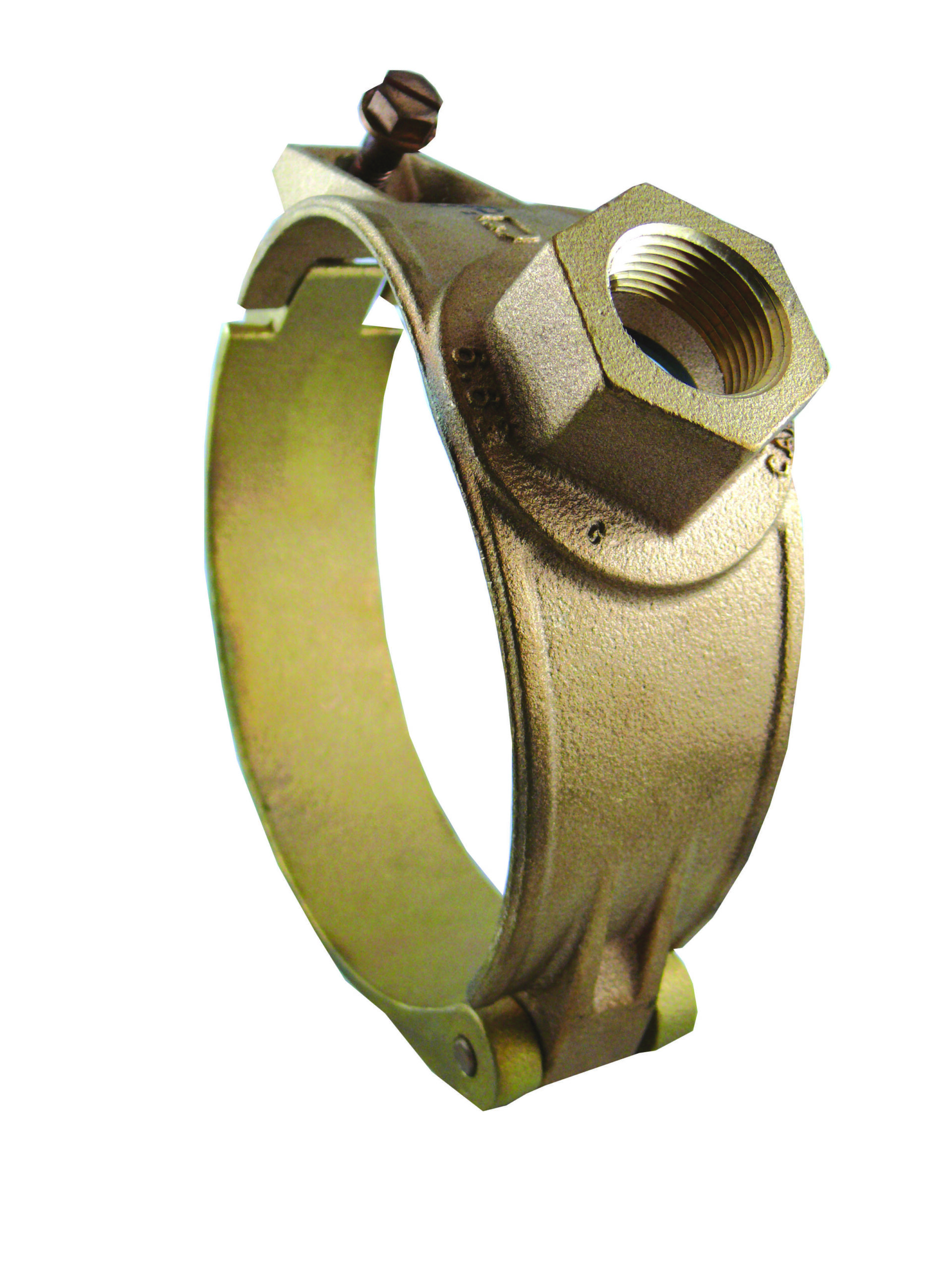 CAMBRIDGE BRASS™ 800-0450-F4 Service Saddle, 4 in IPS, C-900, 1 in FIP Tap, Brass, Wide Stainless Steel Strap