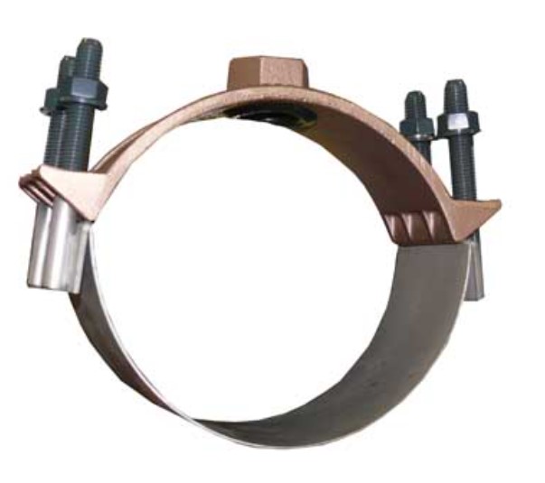 CAMBRIDGE BRASS™ 811-0750-F4 Service Saddle, 6 in IPS, C-900, 1 in FIP Tap, Brass, Wide Stainless Steel Strap