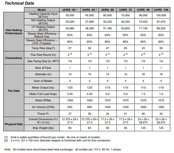 ADP UHRS-75NA 78013719A Residential Low-Profile Unit Heater, 75,000 BtuH, Natural Gas