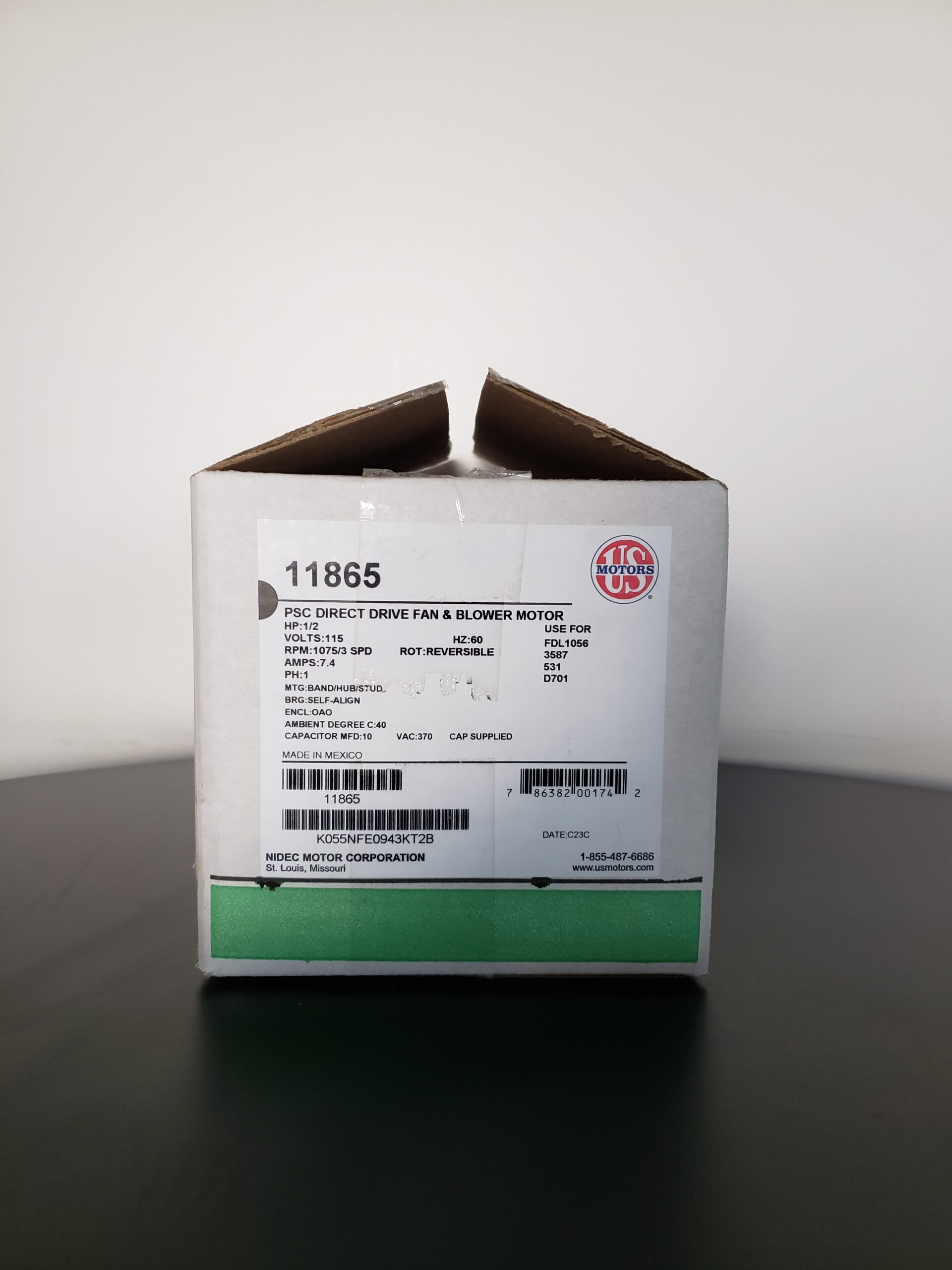 - Direct drive fan & blower, permanent split capacitor, open, 5.6″ dia, hub ring mount (2.5″), with capacitor, 3 speed, 1/2hp, 1075/3rpm, 115vac, sleeve bearing, 5mfd capacitor, 8.9a, reversible rotation, class a insul, continuous duty, 24″ leads, auto