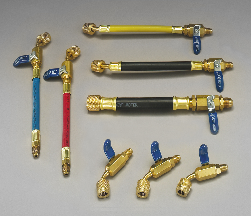 - Flexible hose between valve and fitting for handling in tight areas