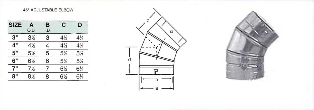 Belvent Manufacturing 120543 45 deg Double Wall Elbow, 5 in