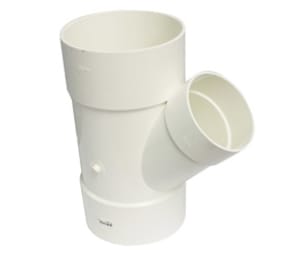 • Installed in a PVC white sewer piping system to allow for a smooth transition from a horizontal branch line into the sewer line. Often used with a threaded fitting cleanout adapter and plug, to allow access to the piping system.