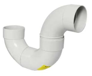 - Installed in an PVC white sewer pipe system beneath a floor drain. The U-Bend is connected to the drain using an sewer pipe sized to match the drain Hub. The 90 Degree part of the assembly is then cemented to the U-Bend and directed toward the rest of the PVC white sewer drainage line.