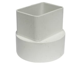 • Installed on a rainwater downspout pipe end to make a smooth transition to a PVC white sewer pipe.