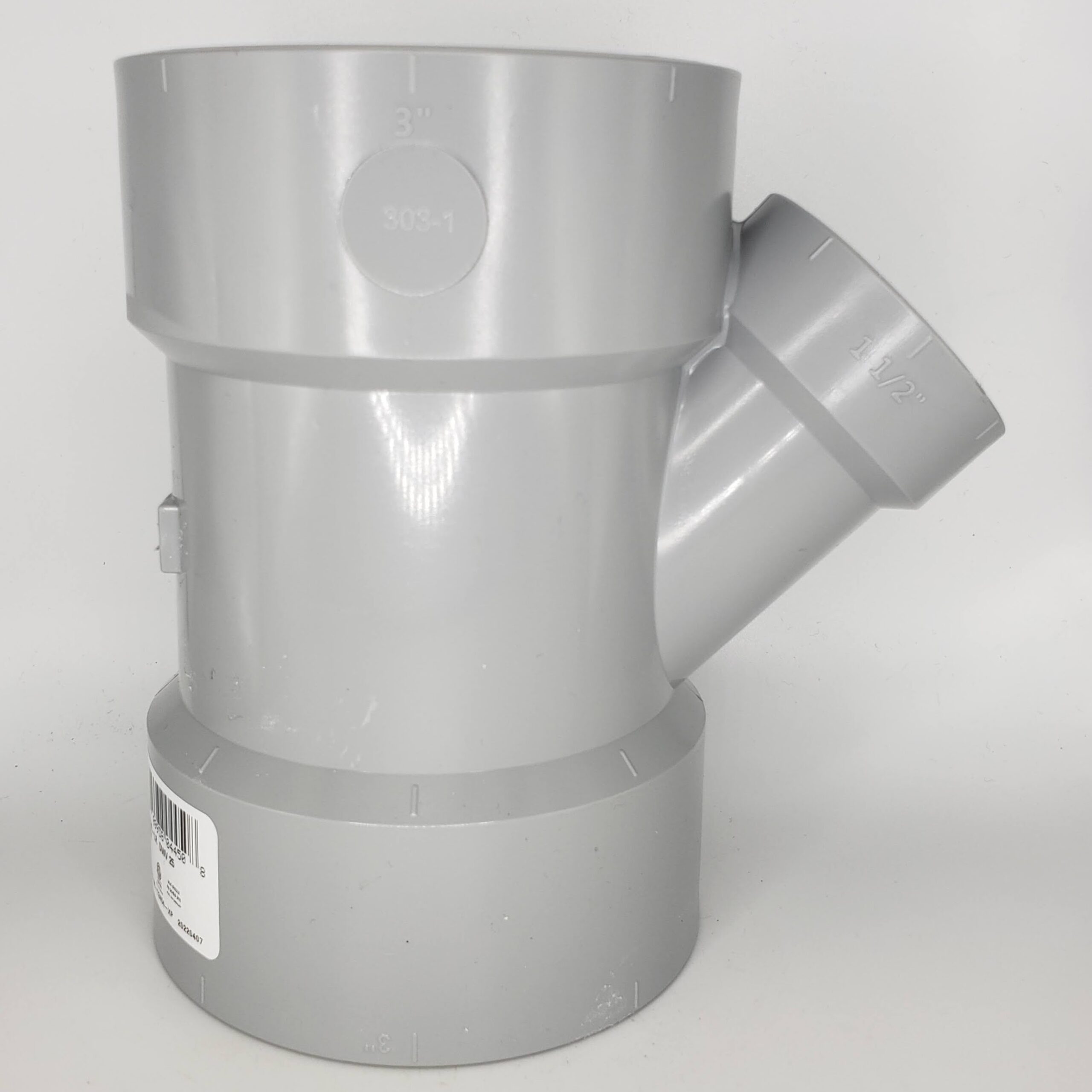 Westlake Pipe & Fittings DL600-337 Low-Rise 45 deg Wye, 3 x 1-1/2 in, Hub x Hub x Hub, PVC