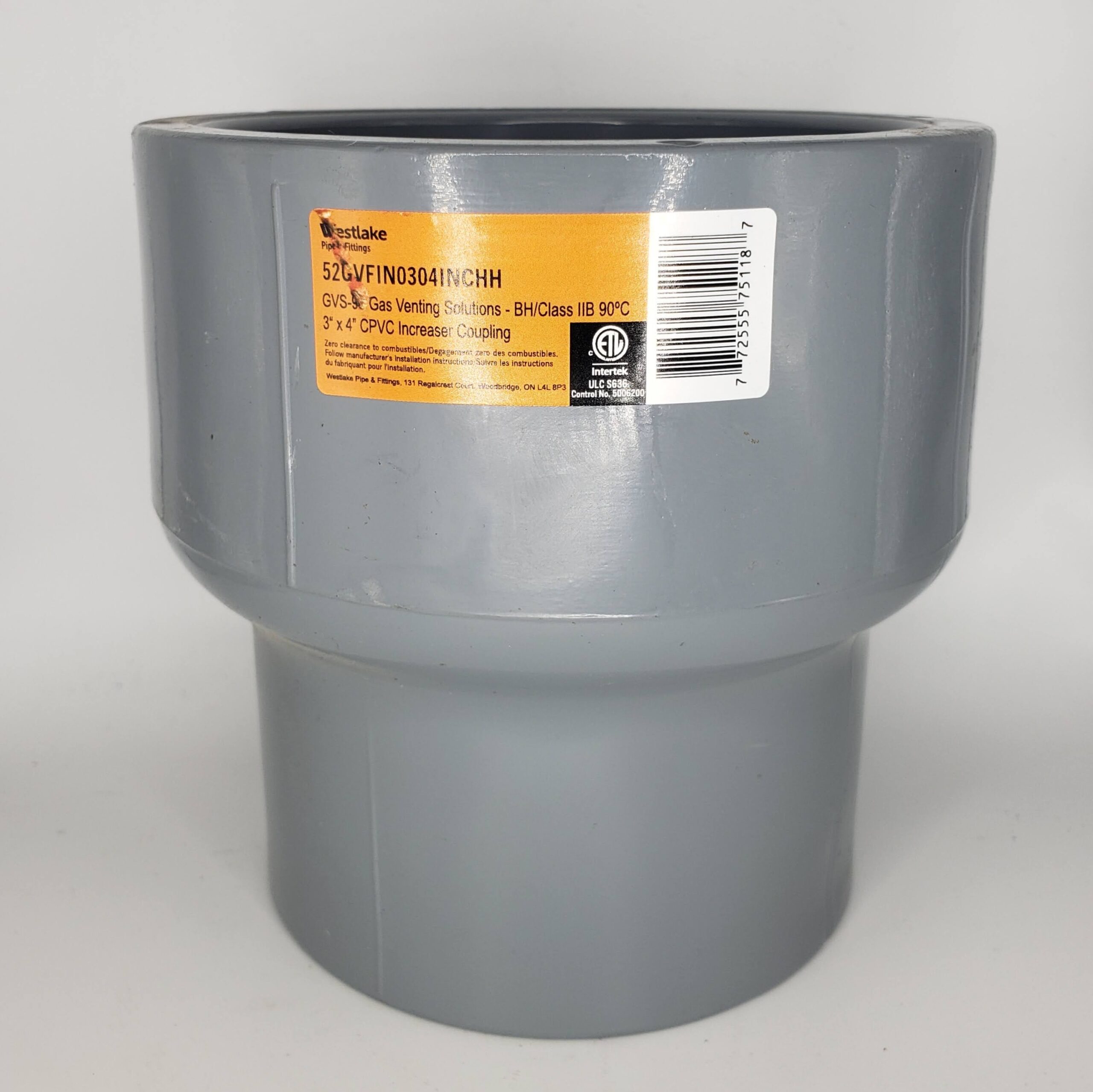 Westlake Pipe & Fittings GVL102-251 Increaser Coupling, 1-1/2 x 2 in, Hub x Hub, PVC