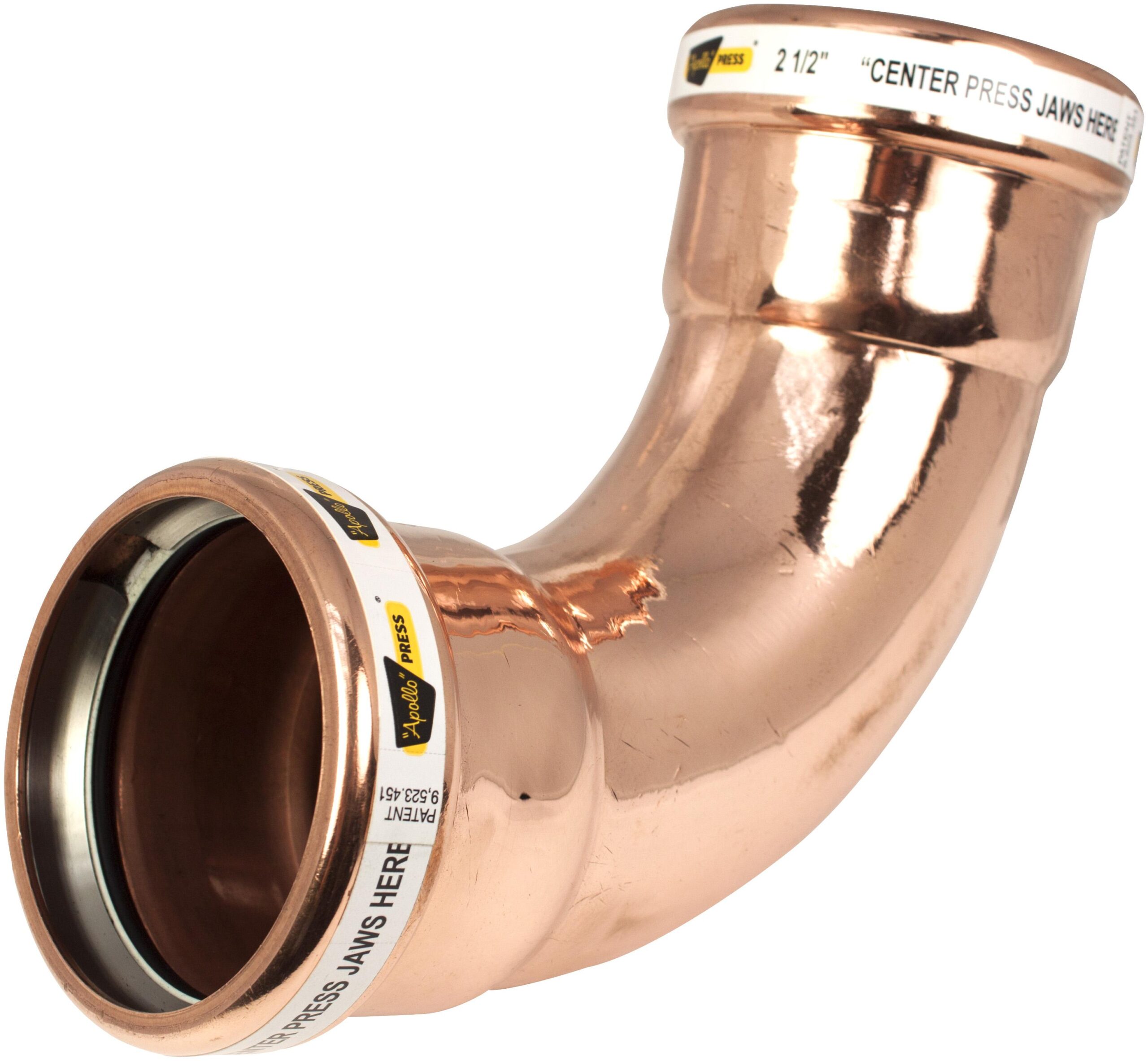 • The ApolloPress 807L Large Diameter Press 90° long Turn Elbow features a lead free dezincification resistant copper body, a patented stainless-steel solid cross-section grab ring, a nylon separation ring and an EPDM o-ring. ApolloPress products are manufactured utilizing proven ASTM materials and standards