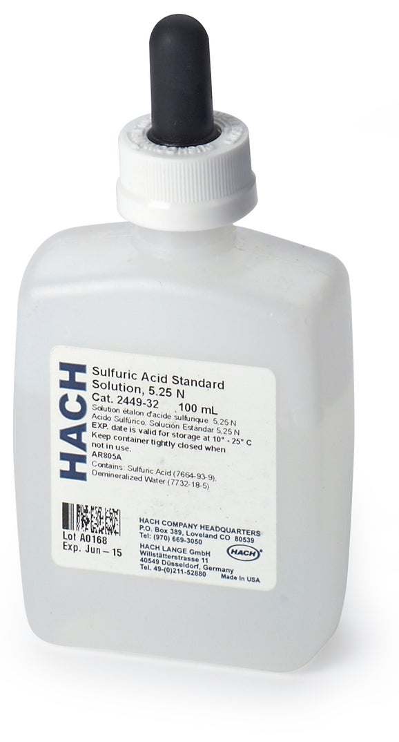 Hach® 244932 Sulfuric Acid Standard Solution 5.25 N, 100 mL, 0.5 pH