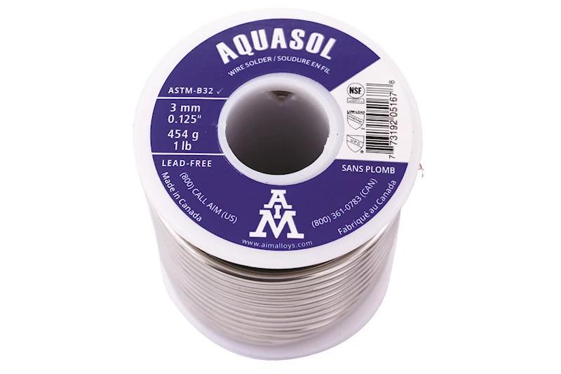 Aquasol 5167 Lead-Free Solder, 3 mm Dia Wire, 416 to 454 deg F Melting, 1 lb, 454 g